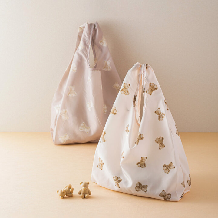 また2021年11月26日から、トッピングのチョコレートベアをモチーフにしたオリジナルグッズが、全国のgelato pique cafeおよびgelato piqueオフィシャルオンラインストアにて販売されています。 「チョコレートベア柄スモールサイズエコバッグ」は、gelato pique cafeの2021年クリスマスクレープにトッピングされた「BROWN BEAR(ブラウンベア)」を、ジェラートピケらしい柔らかなタッチで描いたモチーフが印象的なエコバッグです。 gelato pique cafeのエコバッグでは初のゴムバンドでまとめる仕様になっており、手のひらに収まるコンパクトサイズに丸めることができます。 色のバリエーションはオフホワイトとベージュの2種類そろいます。