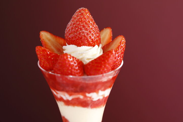 「長崎県 島原市産“恋みのり”のストロベリーパフェ」は、苺をとおして想いが叶うようにと名付けられた“恋みのり”の苺を使用したパフェです。 ほど良い甘みと酸味の味わいが楽しめます。