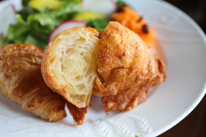 「パン日より」のパンは素材の味わい深さがありながらもシンプルな品揃えなので、食べ合わせやアレンジにも最適です。クロワッサンはフランス産バターをたっぷりと使用し芳醇な香りと深い甘さを引き出した王道の味わいが魅力。