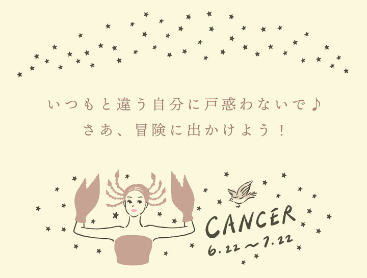 穏やかで、平和主義のかに座。まじめな性格の人が多く、基本的には私生活においてあまり変化を好まない性格です。ですが、2022年はあなたの中で長い間眠っていた冒険欲がムクムクと顔を覗かせるのを感じるはず。 今年のテーマは脱ルーティーン!いつもとは違う通勤路を通ったり、ふだんは行かないようなお店に新しい仲間と出かけてみたり……。行動パターンを広げ、新しいコミュニティでアクティブに行動しましょう。 特に、6月21日~7月23日はかに座さんの直感がさえわたる時期。自分の心が触れる方向にアクセル全開!新しいフィールドでいつもとは違う世界や風景を楽しみましょう。