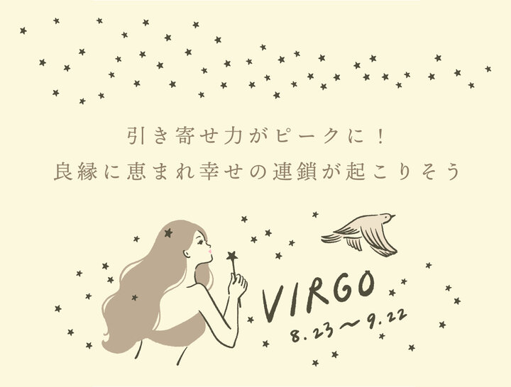 今年は愛されオーラ全開のおとめ座さん。愛情運がピークに達する時です。気になる人との関係が一気に進展したり、結婚や出産など人生の一大イベントを経験する人も多いでしょう。 そんな幸せ気分をキープするためには、心身共に自己管理が大切です。 ちょっと疲れたなと思ったらハーブティでひと息入れたり、定期的にマッサージに行くなどいつも心にゆとりを。普段から笑顔でいられるように心がけると、あなたの周りでハッピーの連鎖が広がっていきます。 仕事面では面倒見がよく、ついつい人からの頼まれごとをしたり、仕事以外のタスクを請け負ったりしがちですが、今年ばかりは勇気をもって「NO」を。スケジュールを詰めすぎずに、マイペースに進められるよう調整しましょう。