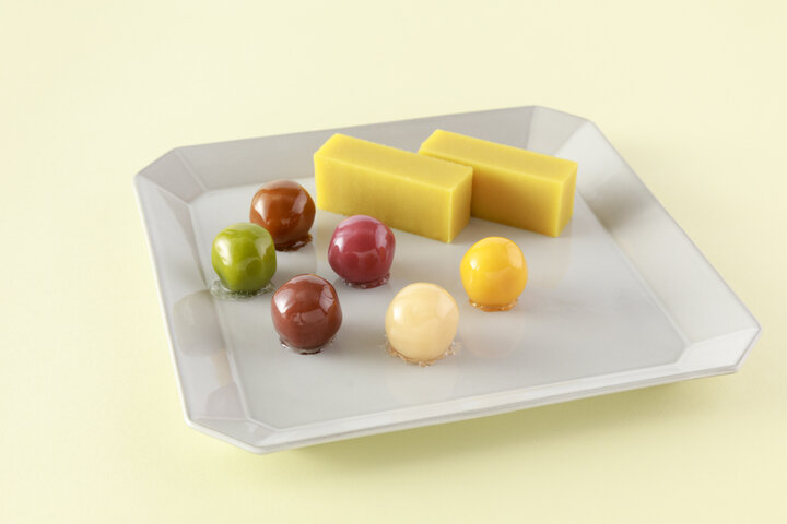 東京名物として長年愛されている「舟和」の看板商品は、おいものおいしさがずっしり詰まった「芋ようかん」とコロンとまあるい「あんこ玉」。この2つのお菓子の詰め合わせは、リピーターにも、初めて選ぶ人にも評判です。 「芋ようかん」は、“ようかん”の名前ですがあんこは不使用。さつまいもそのものの優しい味わいとしっとりした食感です。カラフルな「あんこ玉」は、小豆や白いんげん豆のこしあんの素朴な甘さや、抹茶やいちごなどの風味を楽しめます。薄く寒天がかかったつやつやした見た目と、ひと口サイズがかわいらしい和菓子です。