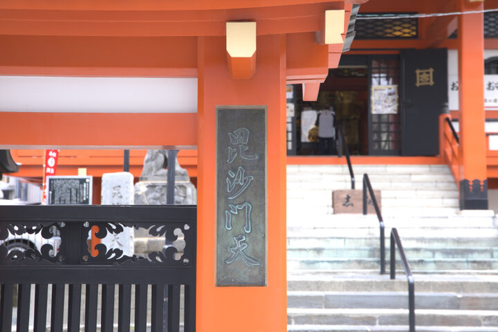 柱や門に掛けられた提灯には「毘沙門天」の文字が