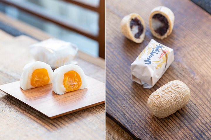 (左)「きんかん大福」10個入り2106円(右)「米どころ」1個173円