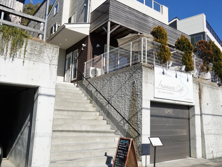 鎌倉と江ノ島の間をゆっくり走る江ノ電の稲村ケ崎駅を降りるとのすぐそばにある「イナムラカフェ」。駅には近くても車の行きかう幹線道路からは少し離れているせいか静かなエリアで、まわりには住宅街が広がります。