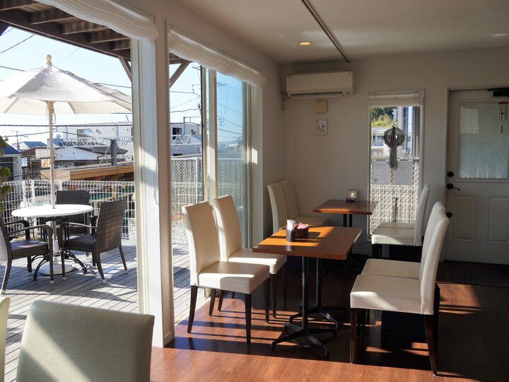 海に近いローケーションでありながら静かな住宅街にあるため隠れ家的な存在の「イナムラ カフェ」。南側に張り出したウッドデッキのテラスでは、都内で腕をふるったパティシエが手づくりするケーキをいただきながらのんびりとした時間が過ごせます。稲村ケ崎の海岸を飛ぶトンビのピーヒョロロ~の鳴き声も聞こえてくる湘南らしい雰囲気のただようカフェですよ。