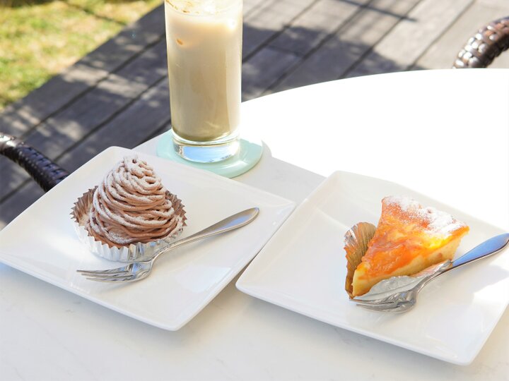 白いパラソルのもとで味わうクオリティー確かなスイーツ