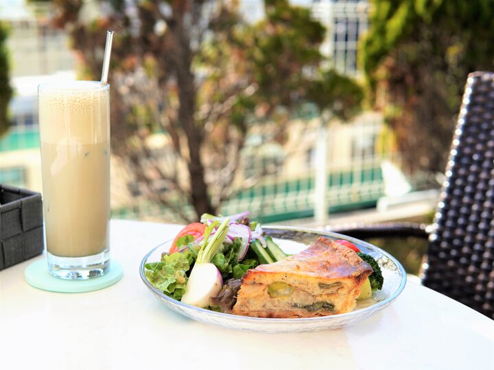 軽食ではモチモチとした「パスタ」(900円)や「キッシュ」が一日中いただけます。パティシエの作るキッシュは外側のパイ生地がサクサクとしていて少し甘め、新鮮な鎌倉野菜を使ったサラダと温野菜が添えられます。「ほうじ茶ラテ」や「自家製ジンジャーエール」(650円)などドリンク類も豊富で「グラスワイン」(500円)を選べばオシャレな昼下がりに。江ノ島を臨む七里ガ浜や稲村ケ崎の海辺で遊んだあとに立ちよってはいかがでしょうか。