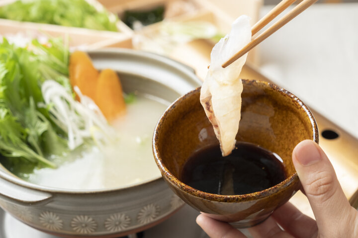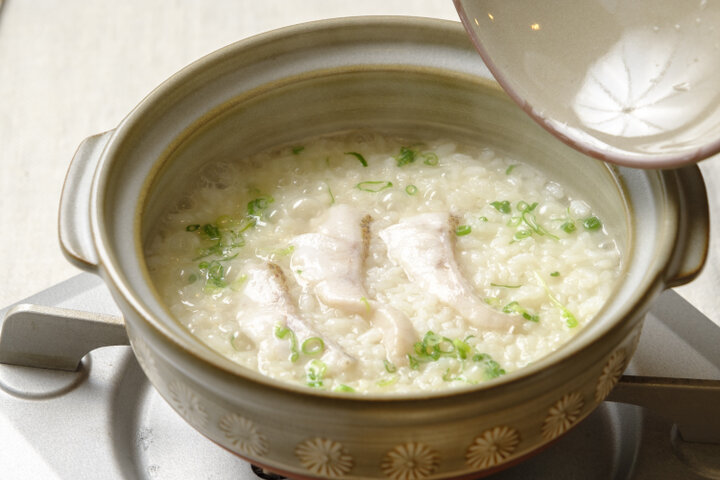 お店の味をおうちでも楽しめるようにと昨年からしゃぶしゃぶ鍋のお取り寄せをスタート。今の時期は、のどぐろ、金目鯛、真鯛、ブリなどが旬。鮮度抜群の魚のアラを炊き込み、毎日継ぎ足す秘伝のスープでいただきます。 コクのある黄金のスープを温め表面だけ火を通せば、魚の旨みがギュッと凝縮。特製のポン酢を少し垂らすと、爽やかな酸味がふわりと広がります。