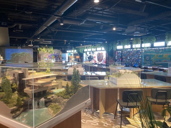 2022年1月12日、建築好きのためのミュージアム型カフェ「アーキテクチャカフェ棲家」が、昼は建築模型とアートを楽しむカフェ、夜はナイトミュージアムバーとしてリニューアルオープンしました。 店内では建築好きが集い語り合える空間を目指し、美しい建築物のリアルな模型を用意。ル・コルビジェや隈研吾をはじめとする世界の名建築家が手がけた近代建築の模型(全12点)を各テーブルに展示しています。 昼のカフェタイムはゆったりとした空間で模型やアートを眺めながら飲み物やフードを楽しめます。ゆったり広々空間のため、打ち合わせやコワーキングスペースとしての利用にもおすすめです。 夜のバータイムはガラリと雰囲気が変わり、建築模型は一旦はけられ、アートにフォーカスした空間に様変わり、ナイトミュージアムバーとなります。名物のチーズフォンデュやパティシェによる〆パフェが登場するほか、DJイベント等も予定されています。