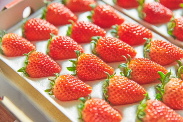 スイーツメニューでは、茨城県産スイーツ苺「いばらキッス」を使った限定メニューが登場します。 「いばらキッス」は、2012年12 月に品種登録された茨城県のオリジナル品種です。果肉がしっかりとした「とちおとめ」を母親に、甘くて大きい「レッドパール」と酸味が少なく柔らかな「章姫」の掛け合わせを父親に交配して誕生しました。 最大の特長は糖度が高く、酸味とのバランスも良く、うまみが濃厚であることです。適度な硬さを持ち、ジューシーな食感も特長です。形はやや長め。皮には濃い赤色で光沢があります。