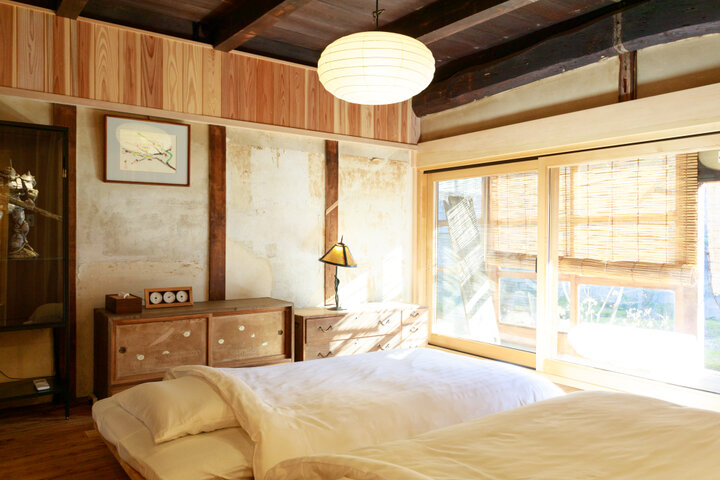 「鵜飼楽屋」は、鵜飼観覧舞台の対岸、長良川北に建つ大正時代築造の商家をリノベーションしたホテル。古い柱や土壁を残し風合いはそのままに、現代アートが映える一軒家を貸し切って、暮らすように旅が楽しめます。周辺に鵜匠の家が点在し、垣間見える日常風景にも触れてみて。