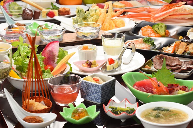 食事は、伊達の奥座敷らしい落ち着きとスタイリッシュさを兼ね備えた約1000平米の広さを持つ、和モダンなバイキングレストラン「seasons~シーズンズ~」でいただけますよ。