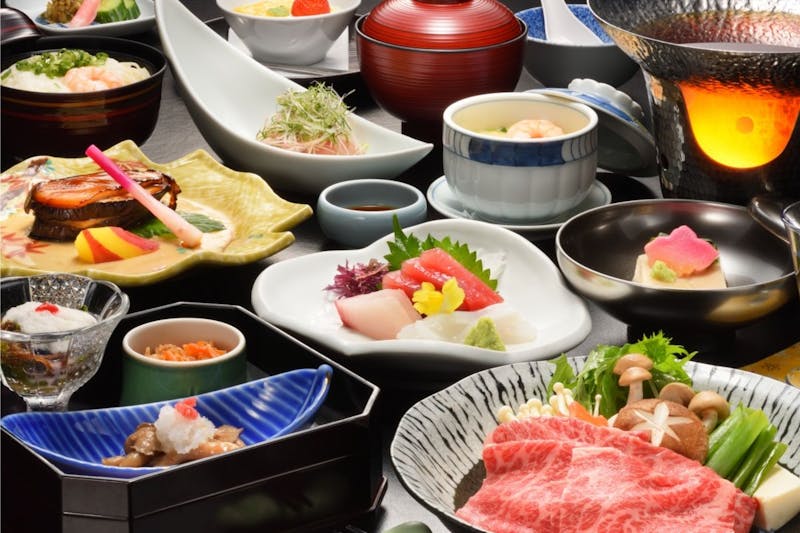 夕食は海の幸、山の幸に恵まれたみちのくの美味を、四季折々の香りを織り込みながら、彩り豊かな懐石料理で提供されます。中でも、三陸産の黒あわびをつかった料理は大変好評の逸品です。朝食では名物の湯豆腐をはじめ、和の味覚を楽しめます。