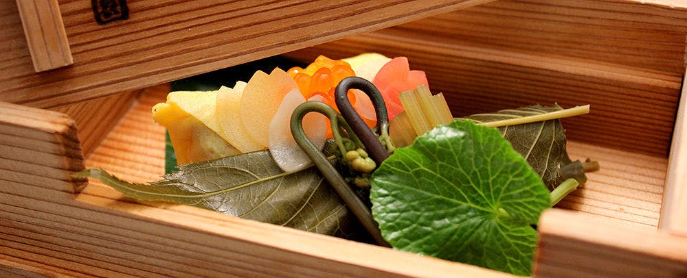 四季折々の厳選素材と、料理長の熟練した手腕の味舞台が楽しめる食事は、水戸屋でしか味わえない贅沢。温かいものは温かく冷たいものは冷たく、郷土の旬にこだわっています。