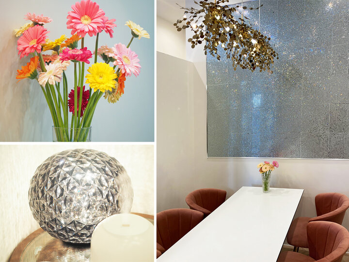 静岡駅から車を走らせること約10分。車が行き交う石田街道沿いに、「ボヌール果実」はあります。 扉を開けると、中は上品でエレガントな雰囲気。その空間に溶け合うように、ガラスタイルを敷き詰めたオープンキッチンがあり、華やかさを演出しています。