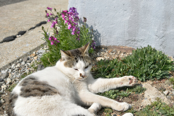 香川県の男木島(おぎじま)は瀬戸内国際芸術祭の舞台でもあるアートの島。3年に一度開催される芸術祭期間を中心に、夏休みシーズンなどは観光客で賑わいますが、オフシーズンはのんびり穏やかな空気に包まれます。たくさんの猫が自由気ままに暮らしていて、島内を散策すればいたるところで猫に会えるんですよ。