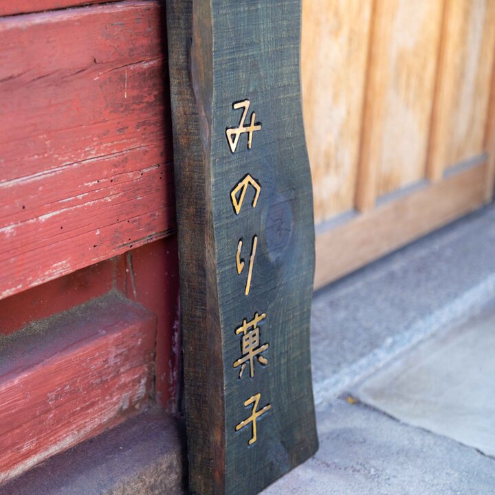 「みのり菓子」へは、京都駅からバスで約30分の堀川上立売で下車、上立売通を東へ進み、2筋目の路地を右へ入った辺りです。営業日には「みのり菓子」の看板も出ているので見逃さずに。スマホの地図を利用する場合は、「草と本」で探してください。
