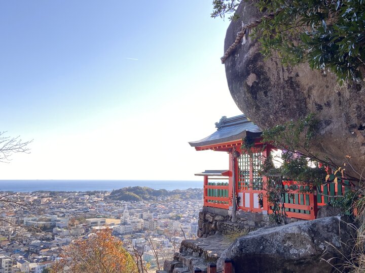 熊野三山に祀られている神が降臨したと伝えられている「神倉神社」は、「熊野速玉大社」の摂社。傾斜のきつい538段の石段を登りつめた先にあるのが、熊野権現が地上に初めて降臨したという御神体のゴトビキ岩。神社は山の中腹に位置しているため、市内随一のビュースポット。新宮市街や遠く太平洋も見晴らせます。