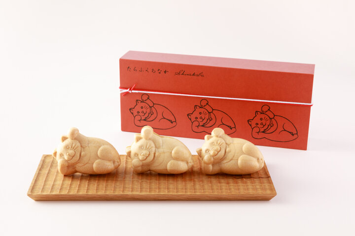ついつい食べ過ぎちゃったような丸さがかわいい、「たらふくもなか」。最中を作っているのは墨田区・錦糸町にある「御菓子司 白樺」。「たらふくもなか」は形もオリジナルで、丸みのある体形やモジモジした脚など細部までこだわって誕生しました。裏側にあるしっぽでひそかに小判を抱えているのもポイントです。 パリッとした皮は香ばしく、あんのしっとりした食感と良い対比。耳先からしっぽまでたっぷり詰まっているのはちょっと珍しい黄金色の粒あん。大きな粒がきれいにそろい、ホクホクとした口当たりとほどよい甘さを楽しめます。
