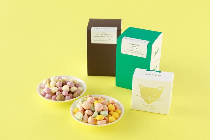 猫の絵柄が乙女心をくすぐる、カラフルで素朴な一粒クッキー「ボスケット」/石川県