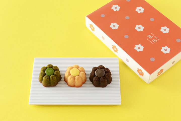 京都駅直結の百貨店内にある、フランス生まれのお菓子ティグレの専門店「花円(はなまどか)」。花をモチーフにしたオリジナルの型が愛らしく、特別な日のおやつやギフトにも好評です。 「京の詰合せ」は、宇治抹茶を使った「抹茶」、京都産茶葉の「ほうじ茶」、国産柚子が爽やかな「柚子」の3種が楽しめます。口当たりの良いしっとりした生地にそれぞれの素材の香りが鼻をくすぐります。甘いガナッシュはクリームのようにやさしく溶け、食感の変化も楽しめます。