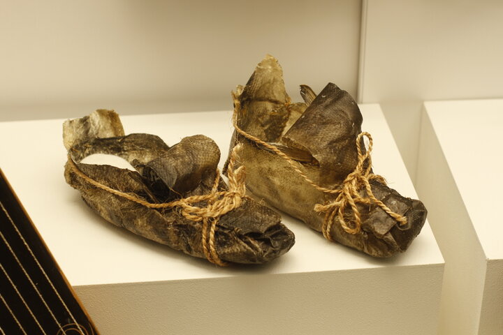 捕ったサケを余すところなく使うという考え方から、皮で靴(チェプケリ)を作りました。卵を産んだ後のメスのサケをホッチャレと言い、その皮が厚くて丈夫なため、靴が長持したそうです。アイヌ民族にとってサケは大切な食料。皮だけでなく内臓や骨も大切に、生活のなかで活用していました。
