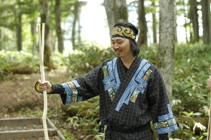 ひと休みを兼ねて、先ほど作ったムックリを森の中で奏でます。木々にこだまするムックリの不思議な音色を聞いていると、まるで森の中に溶け込むような不思議な感覚を覚えます。 最後は、アイヌ衣装を着て記念撮影です。 ツアーは約2時間30分。地元のガイドの方たちと過ごすひとときは、忘れられない思い出になります。