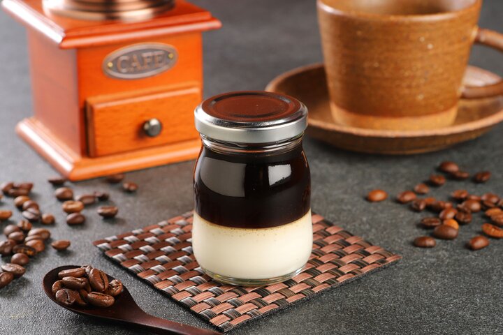 「珈琲ラテプリン」は、自家焙煎珈琲専門店「緑の館 高山店」が「金沢プリン亭」のプリン専用に特別に焙煎・調合した珈琲豆を使用しています。この特別な珈琲豆を店舗で24時間かけてじっくり抽出し、薫り高く香ばしいゼリーに仕上げています。