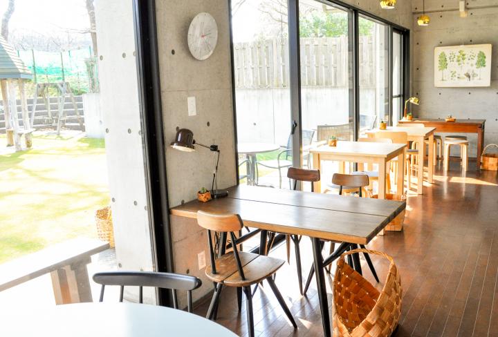 JR仙台駅からバスで約20分、文殊堂前で下車し徒歩5分ほど。作並街道から細い坂道を上ったところに「ビヨルク・ヘムスロイド&カフェ」があります。 家の玄関ドアのような扉を開け、スリッパに履き替えて店内へ。まるで友人宅に遊びに来たような感覚で、たちまちリラックスモードになれます。 テーブル席が5つ配されたカフェスペースは、コンクリートの壁と温かみのある木製の家具がマッチしたシンプルな空間。一角には、白樺のかごなどの北欧雑貨がずらりと並んでいます。
