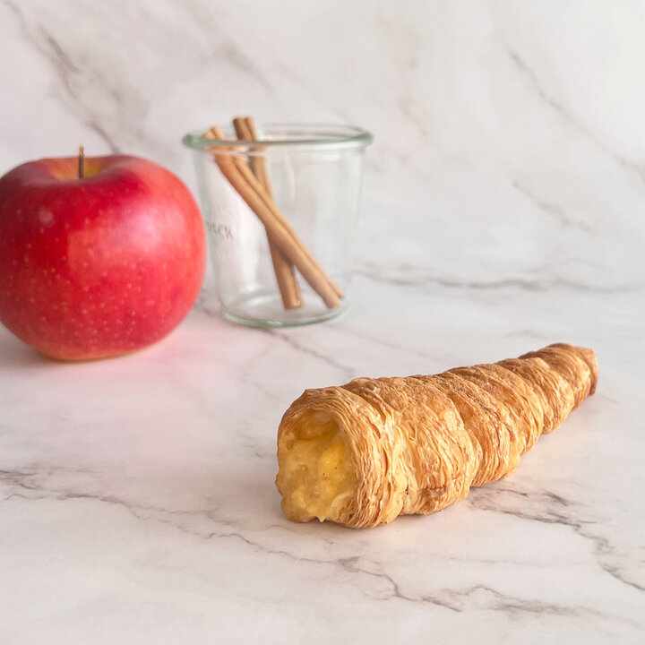 「アップルパイ」は、じっくりとコンポートをしたリンゴと香り高いシナモンをカスタードに加えることで、絶妙なハーモニーを奏でています。 ごろっとサイズのリンゴもお手軽サイズながら、食べ応えのある逸品です。