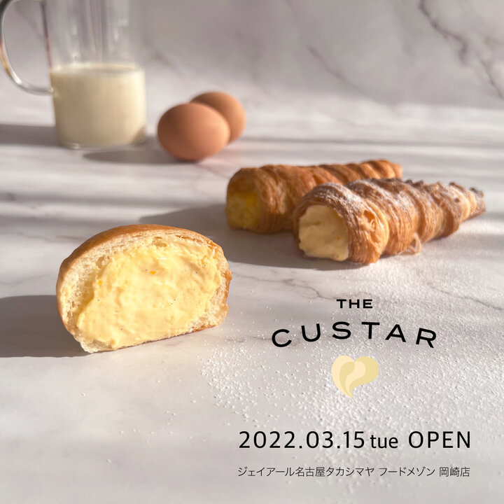 2022年3月15日、カスタードクリーム専門店の「THE CUSTAR(ザ ・カスター)」が、ジェイアール名古屋タカシマヤ フードメゾン岡崎店にオープンしました。 「カスタードを主役に。」をコンセプトに、人気スイーツの脇役であったカスタードを輝かせるため、 カスタードのおいしさ、楽しさ、可能性を提案するスイーツが並びます。