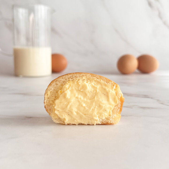 さらに、甘くてコクのある地元岡崎名産「ランニングエッグ」と生クリームを黄金比率で混ぜ合わせた自家製カスタードクリーム「THE CUSTAR」(ザ・カスター)を商品化。 追いカスターとして、パンに塗って、焼いて、凍らせてアイスに、スイーツ作りに…楽しみ方は無限大です。 カスタードが主役のスイーツを、この機会にぜひ味わってくださいね。