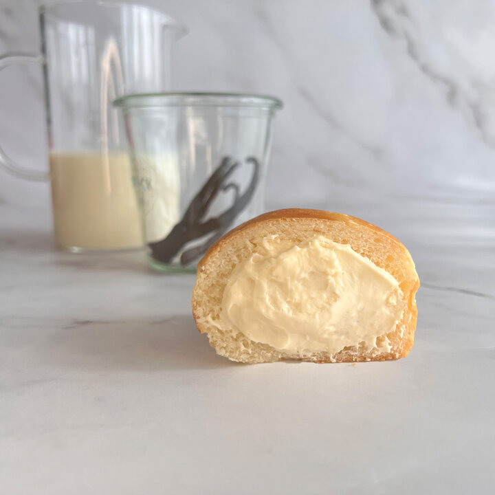 「バニラホイップ」の真っ白なカスタードクリームは、フワッと軽やかな口当たり。 食べたときにバニラの香りが口の中いっぱいに広がり、程よい余韻に包んでくれます。