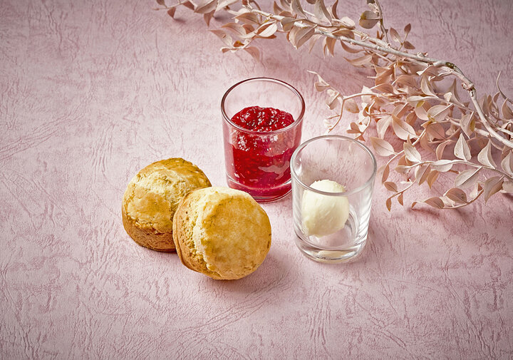 スコーン ・プレーンスコーン2個 ・ラズベリー/ローズマーマレード ・クロテッドクリーム