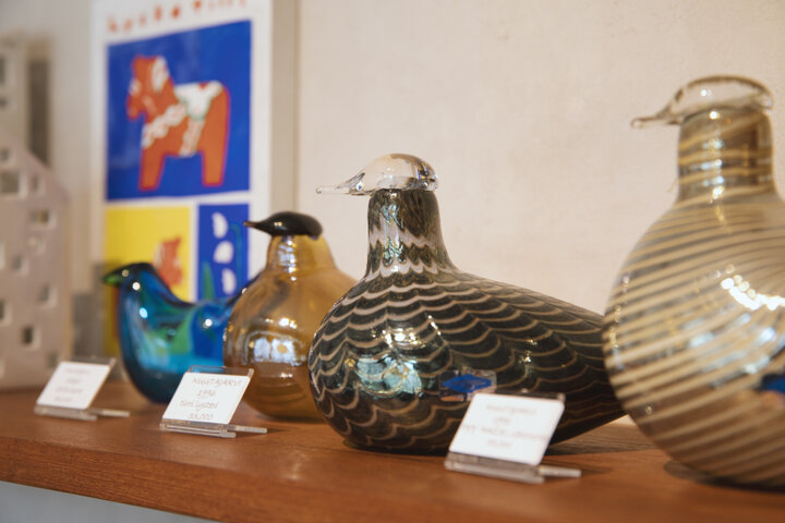 お部屋に飾ればパッと華やかになる、かわいい雑貨も見逃せません。こちらは1972年から製造が始まったOiva Toikka(オイバ・トイッカ)作のSieppoシリーズのオブジェ。鳥をモチーフにしたオブジェで丸みを帯びたフォルムがかわいらしく、ガラスでできているので光にあたるとキラキラと輝きます。玄関やお部屋などに飾ればグッとおしゃれになりますね。