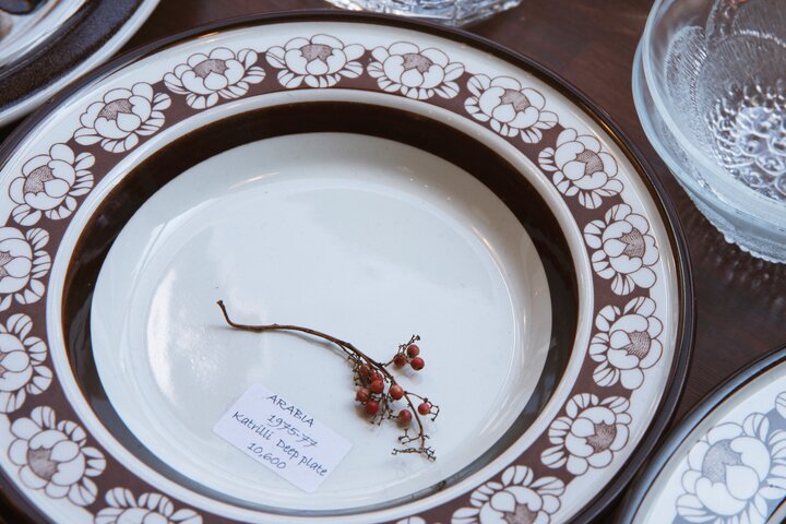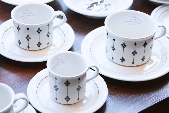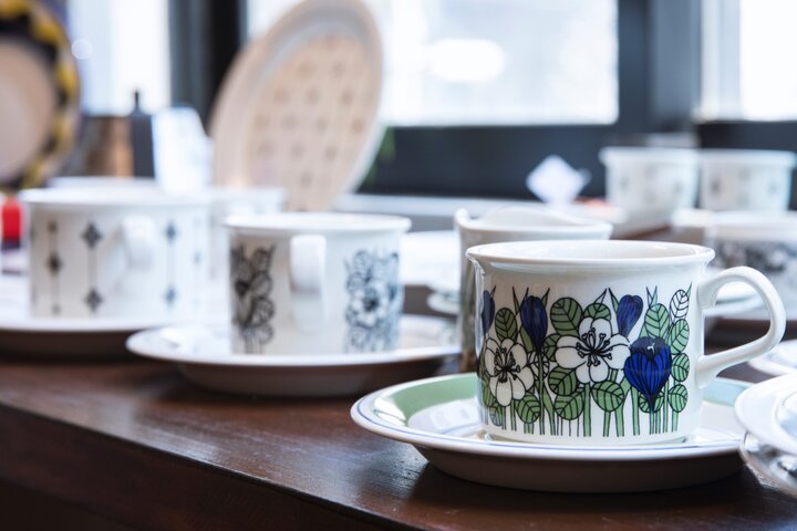 店内には古橋さんが気に入ったものや、現地の人のおすすめなど、使い心地がよく食卓やお部屋を華やかにしてくれるような、すてきなアイテムが約80種類ほどラインナップされています。 こちらは1973~76年の間に生産された一品。フィンランドの女性デザイナー・Esteri Tomula(エステリ・トムラ)がデザインした上品な雰囲気をもつ「コーヒーカップ&ソーサー」で、シンプルなデザインで生活に取り入れやすいと人気のアイテムです。