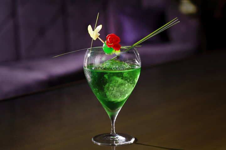「緑星のガイア」は、ガイア(人々や自然を含めた地球そのもの)をイメージし表したカクテルです。地球への感謝が込められています。
