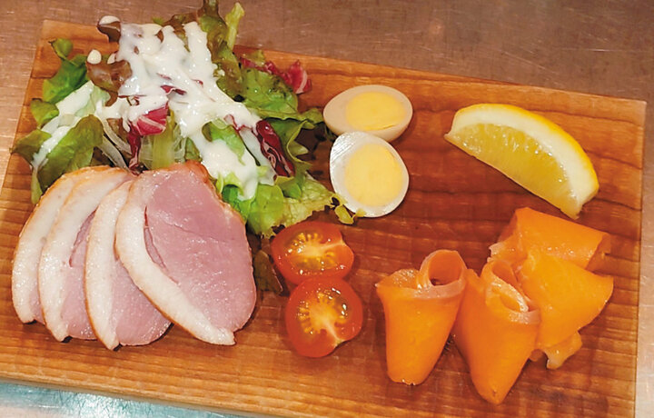 人気メニューの合鴨とサーモンのスモーク盛り合わせ1210円