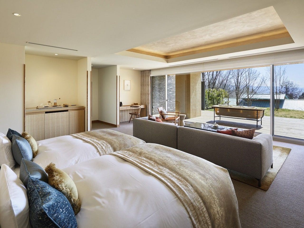 「キュリオ コレクション」は、ヒルトン ワールドワイドがゲストのために吟味し、セレクトした独特の4つ星、5つ星のグローバルなホテルコレクションです。 「旧軽井沢KIKYOキュリオ・コレクションbyヒルトン」は、全50室のうち約9割にあたる46部屋が40㎡を超え広々とした贅沢な客室。また、館内のいたるところには軽井沢彫の名店である大坂屋家具店製作の「桔梗」の花をモチーフにした軽井沢彫が施され、軽井沢の落ち着きや木々の温かみを感じられます。