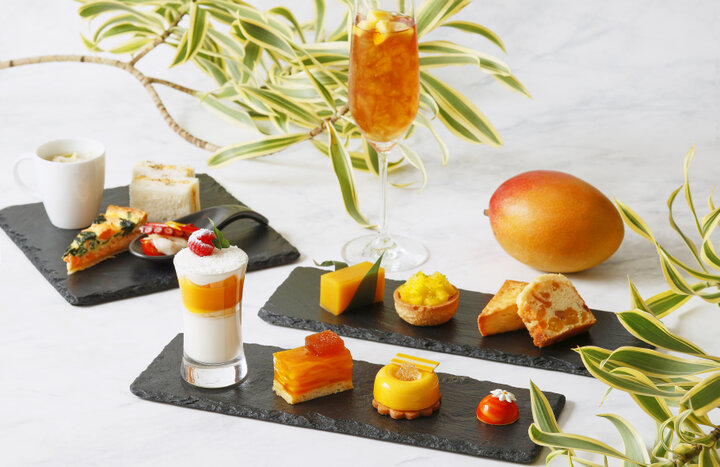 日本美のミュージアムホテル、ホテル雅叙園東京では、2022年4月11日~5月31日の期間限定で「マンゴーアフタヌーンティー」を、New American Grill “KANADE TERRACE”にて販売しています。 夏のイメージが強いマンゴーは、実は、春から初夏が最もおいしい季節。仕入れてから追熟させるマンゴーは、ペストリーシェフが食べごろを見極め、フィリピンマンゴーやタイマンゴー、アルフォンソマンゴーなど、品種ごとの特徴を活かしたスイーツで、マンゴーのおいしさを最大限に引き出します。 薄くスライスしたマンゴーとパッションフルーツのクリームやジュレを層にした「マンゴーのミルフィーユ」や、和菓子の要素を取り入れた「マンゴー水羊羹」のほか、マンゴーと相性の良いココナッツやバナナ、ライムなどを用いたスイーツも用意。セイボリーには、リッチな味わいの「カルボナーラサンドイッチ」や、セロリ、ナンプラーなどで初夏の爽やかさを演出した「水蛸と彩り野菜のマリネ」などのメニューを用意し、スイーツのマンゴーを引き立てています。