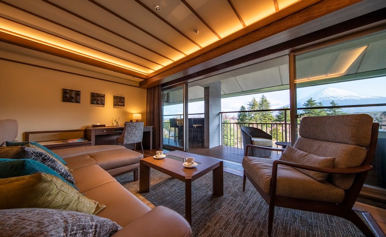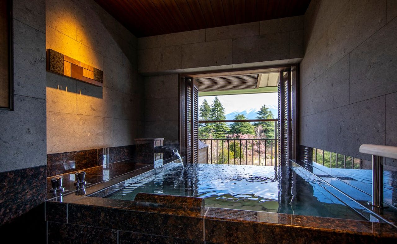 富士山を望む「ホテル鐘山苑」に設えた、全室露天風呂付の特別フロア「富士山温泉 別墅然然」