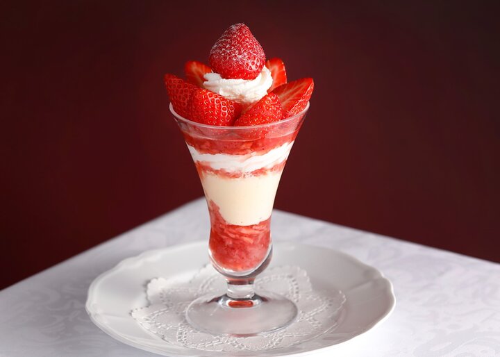 東京銀座資生堂ビルに店を構える「資生堂パーラー 銀座本店サロン・ド・カフェ」は、名物のパフェをはじめ、お昼、午後、夜まで、思い思いのひとときを過ごすことができるカフェ。 伝統を受け継ぐ赤い壁に、ピンクのインテリアが特徴で、テーブルに着くだけで心躍る空間が広がります。 5月のおすすめパフェでは、年を重ねるごとにまろやかな味になる樹で実った旬の枇杷を使用したパフェと、先月より好評の“越後姫”のストロベリーパフェが数量限定で登場するほか、“アスカルビー”を使ったストロベリーパフェがそろいます。