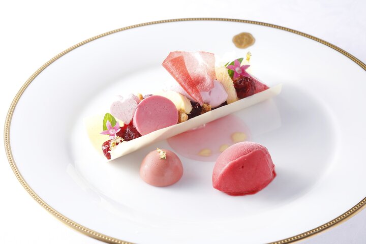 いろいろな食感を楽しめる「グリオットのバリエーションデザート」(コーヒーまたは紅茶またはハーブティー/カップサービス)は、グリオットをメインにシャーベットやマシュマロ、ムースなど、さまざまな製法で仕立てられています。