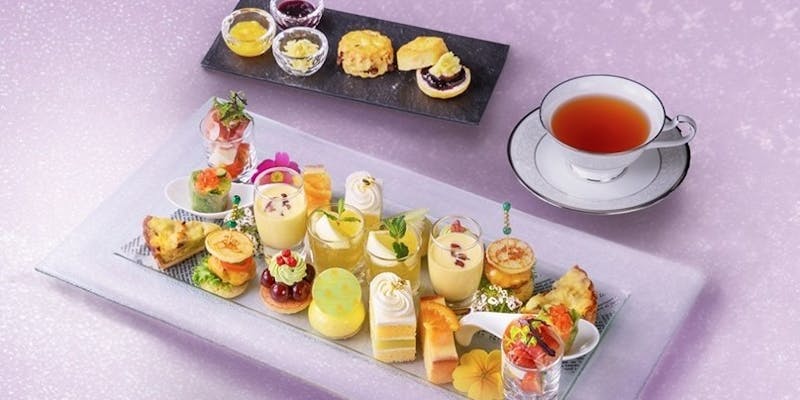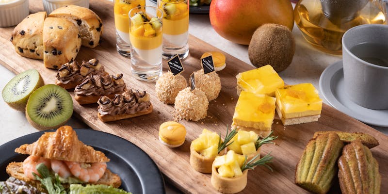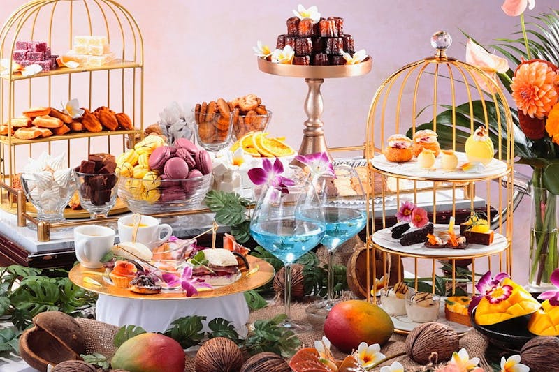現在はトロピカルサマーアフタヌーンティーを開催中。マンゴープリンやパイナップルタルトなど、一足先に夏の気分を味わってみてはいかが?