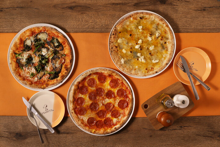 スヌーピーの大好物であるピッツァは、キャラクターやコミックのワンシーンをイメージしたものから、こだわり具材のベジタブルピッツァなど、バリエーション豊富に用意。 栄養価の高い全粒粉をブレンドした生地は、ほんのり香ばしく食べ応えある食感に。