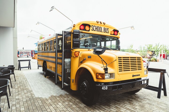 気分は“PEANUTS GANG”♪ アメリカンなスクールバスがお出迎え