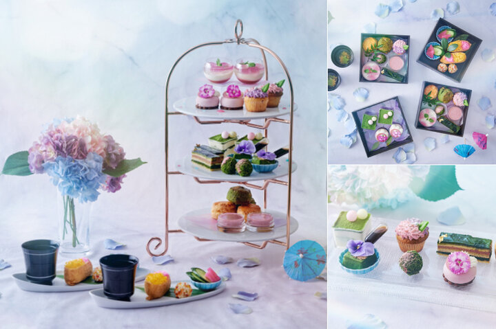 さらにプロの味を自宅で楽しむことができる、アフタヌーンティースイーツのテイクアウトも同期間に販売しています。 テイクアウトスイーツは、抹茶オペラ、抹茶柚子トリュフ、抹茶ティラミス、抹茶くずもち、ルビーショコラとフランボワーズムース、紫陽花マフィン(ラズベリーマフィン)、紫陽花ジュレ(パンナコッタとレモンの桃ジュレ)、プレーンスコーン、抹茶スコーンがそろいます。 * * * 予約方法など詳細は、公式サイトをご覧ください。 雨露にきらめく“紫陽花”イメージの和洋折衷スイーツを、この機会にぜひ味わってくださいね。