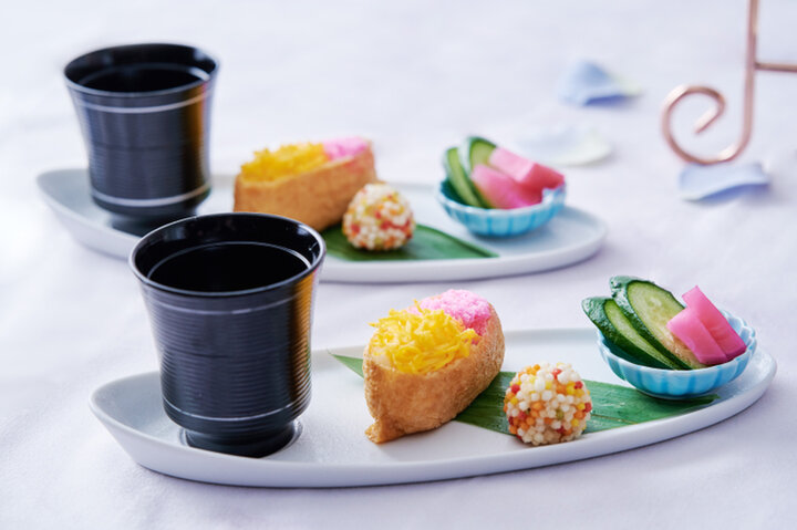 海老の真上揚げや花稲荷寿司などのセイボリー、2種のスコーンとともに、紅茶やコーヒーも飲み放題で提供されます。 初夏の柔らかな日差しを感じる空間で、優雅なティータイムを過ごすことができますよ。