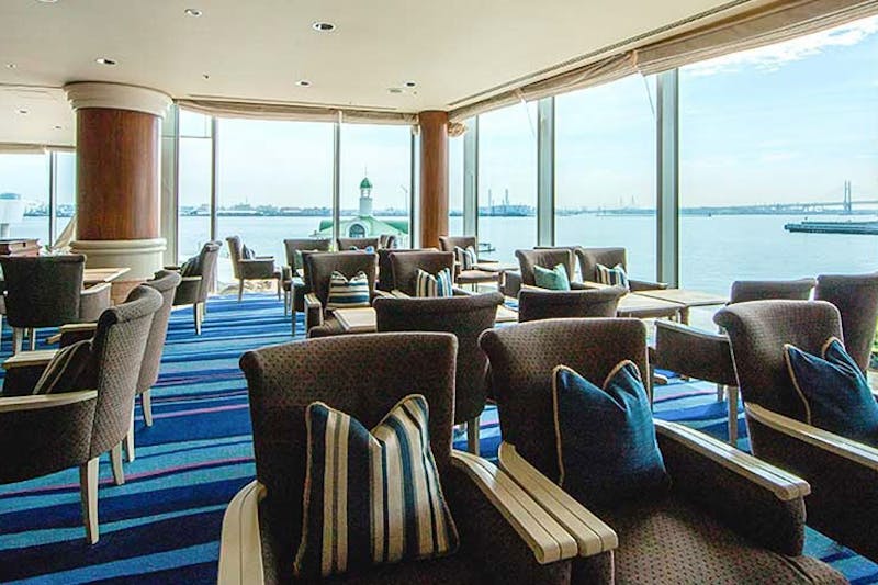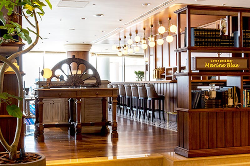 美しい蒼が映える店内で、横浜港を一望しながら美食を楽しむ「ラウンジ&バー『マリンブルー』」